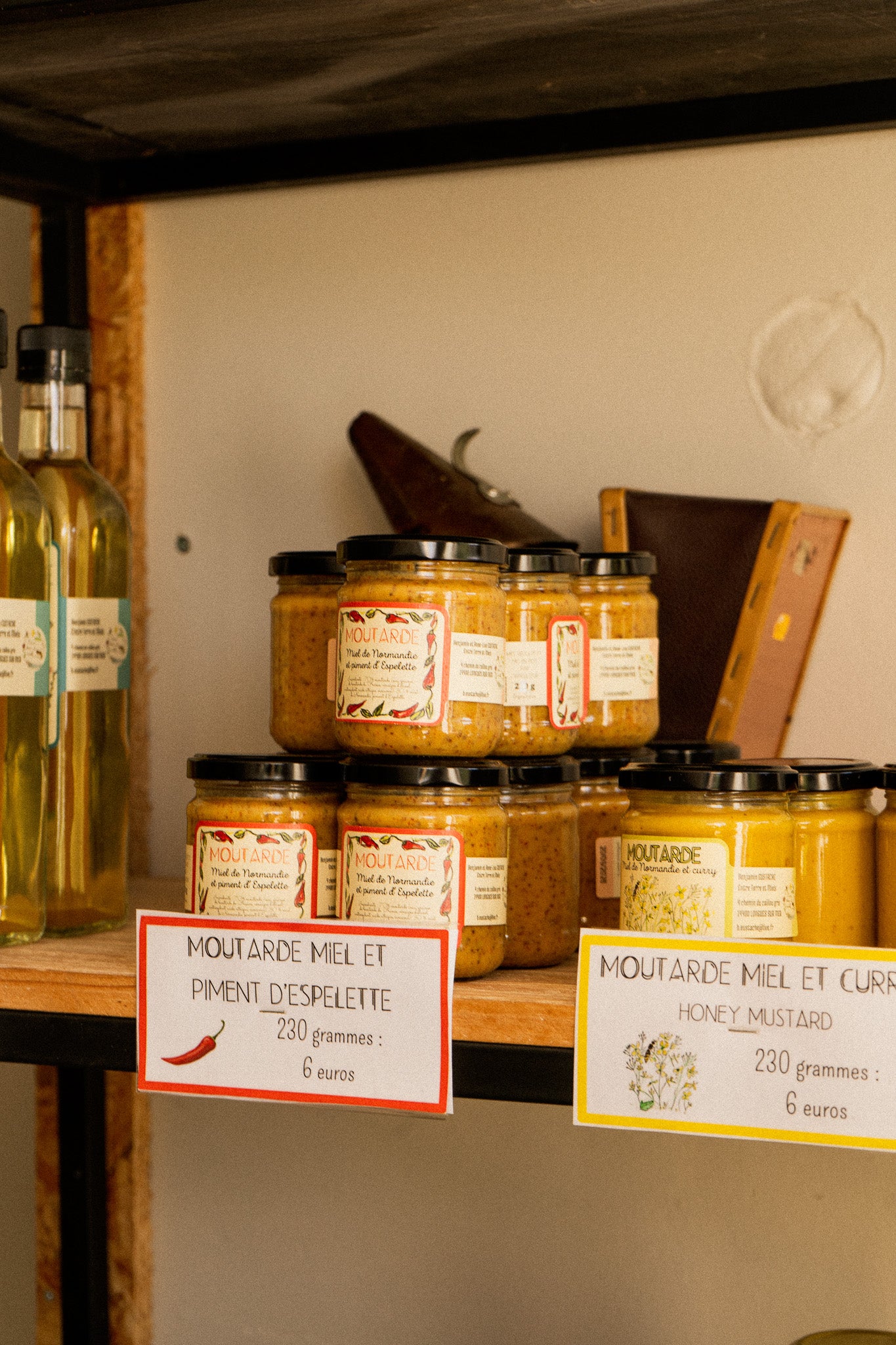 Les châtaigniers et acacias sont rares en Normandie et ne permettent pas la production de miels. Ils sont donc issus de la transhumance de nos ruches dans des régions voisines à la Normandie (Sarthe pour le châtaignier et région parisienne pour l'acacia). Après la transhumance, toutes les ruches rentrent en hivernage dans le Calvados en Normandie.
